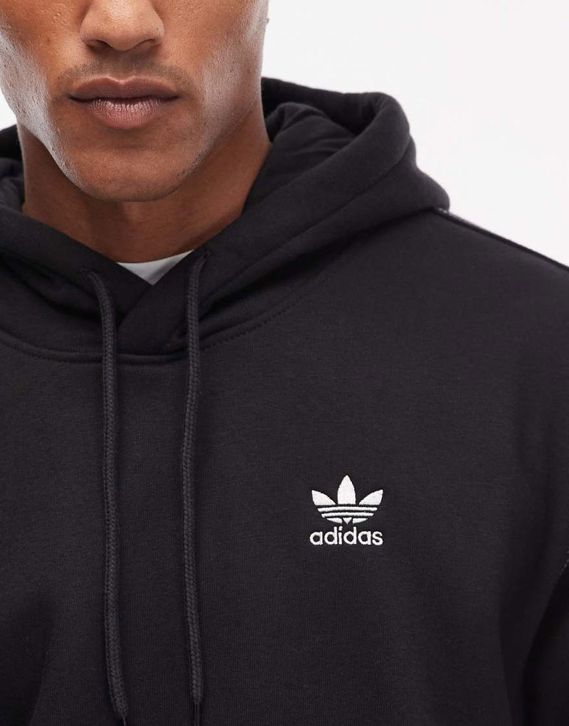Trefoil Essentials Hoodie In Black With Contrast Stitch Detail