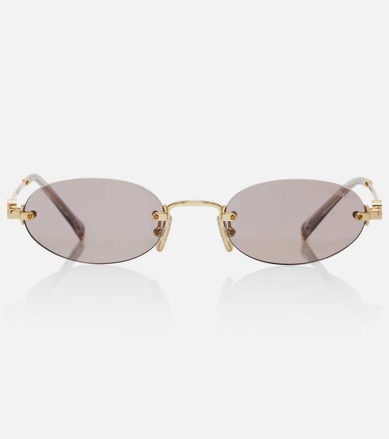 Miu Miu has taken the world by storm with its future-forward approach to design and expressions of personal identity. Complete with logos at the temples, these sunglasses have gold-toned wire frames and oval lenses.