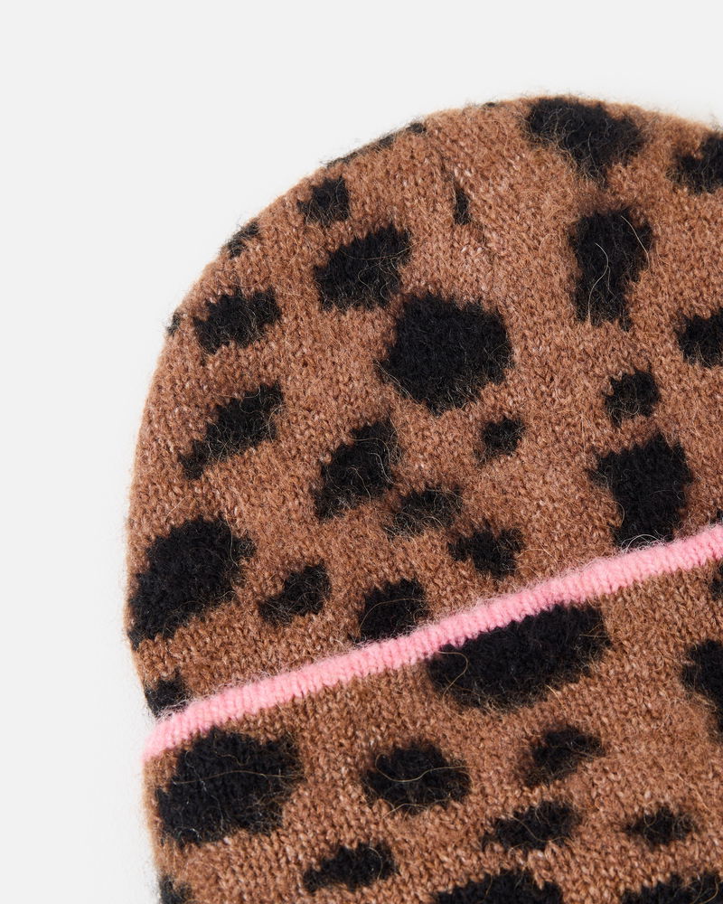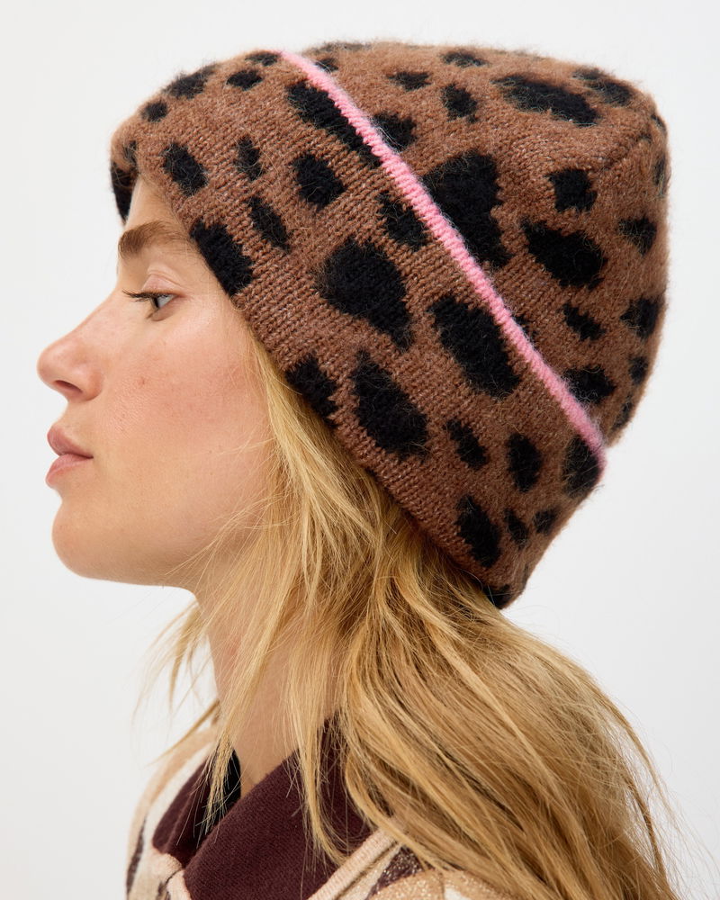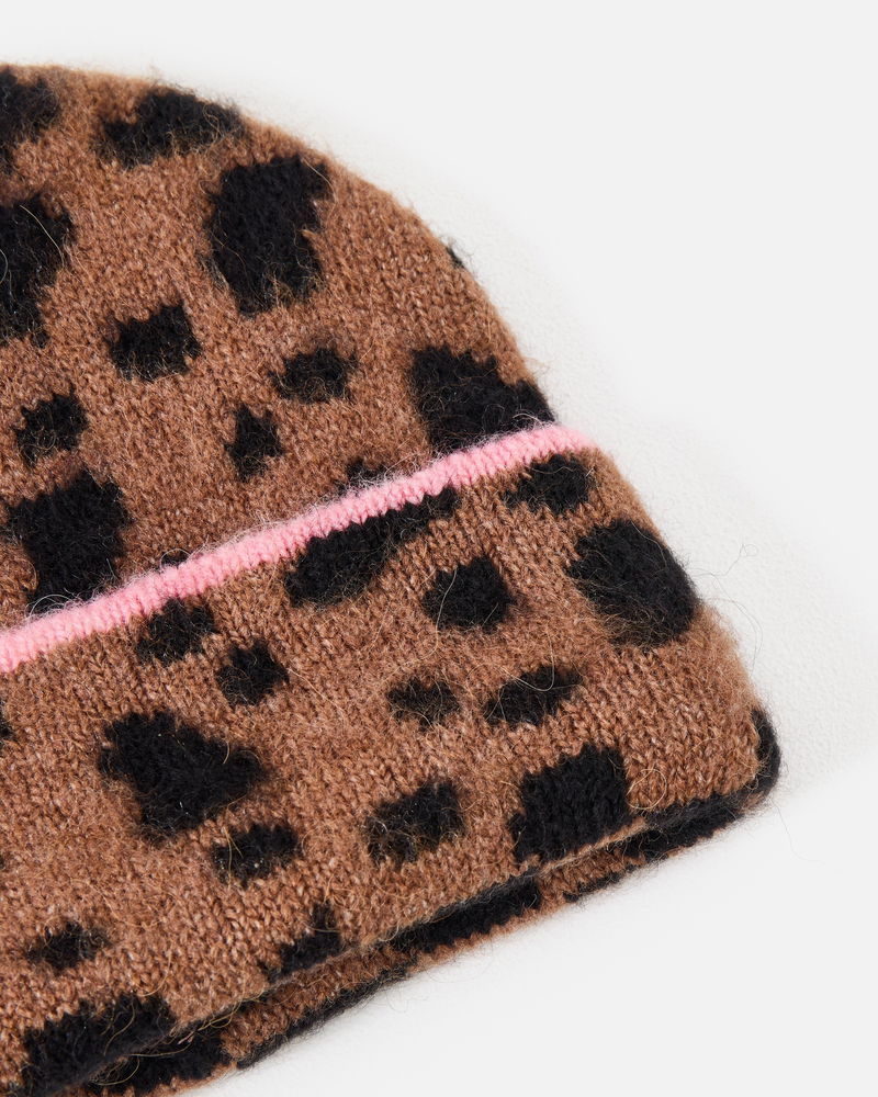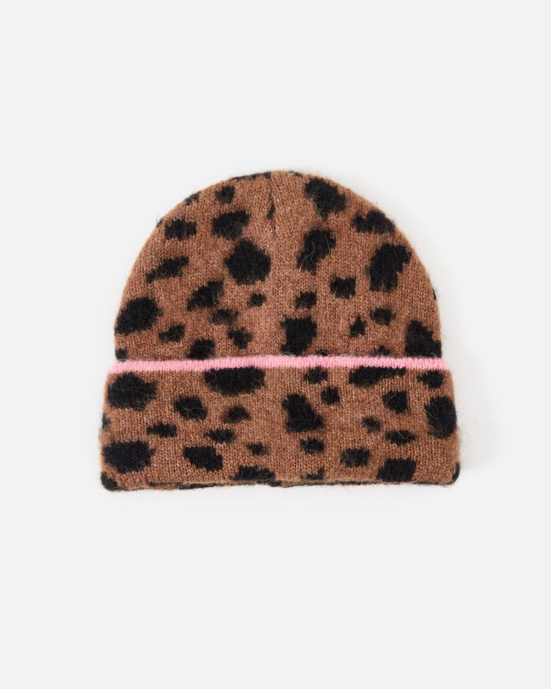 Brown & Black Spotty Animal Print Knitted Beanie Hat