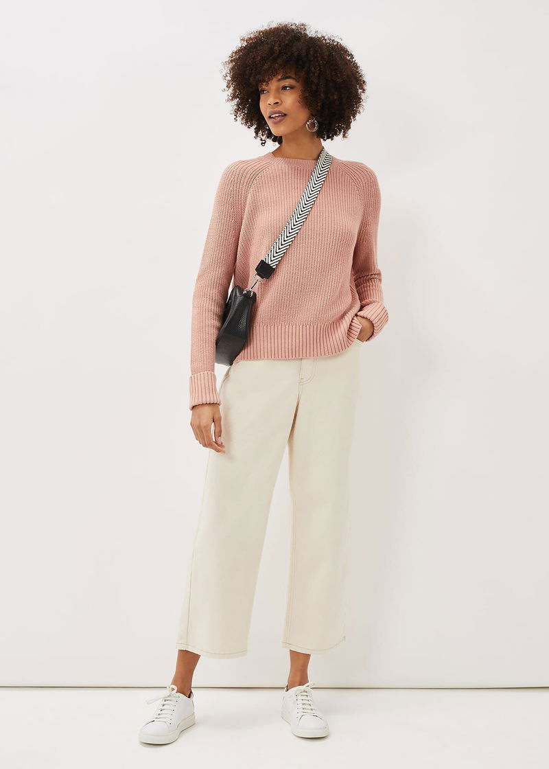 We can't wait to wear this style. Our super soft Susan Jumper is designed in a cardigan stitch for a chunky textured finish. Designed in a soft pink shade and a relaxed fit, we're wearing ours over denim for an easy spring look.