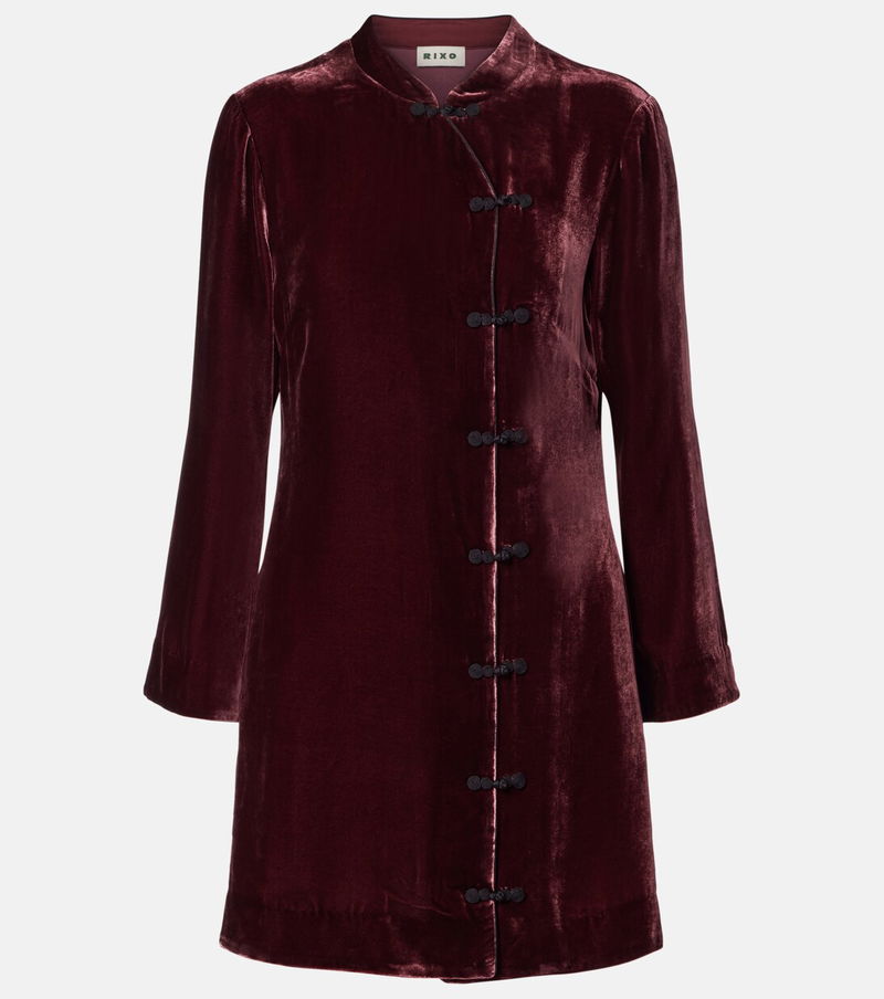 London label Rixo takes classic silhouettes and fuses them with British eccentricism. Made from burgundy velvet, the Delphina minidress is complete with toggle fastenings down the front.