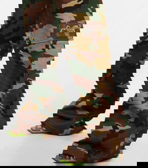 Camouflage High-rise Wide-leg Cotton Cargo Pants