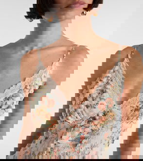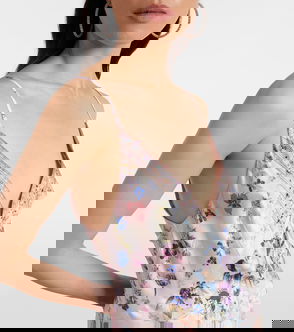 Embellished Floral Ruffled Silk Satin Maxi Dress