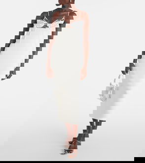 Feather-trimmed Satin Midi Dress