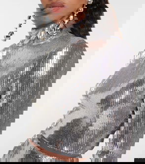 Sequined Mockneck Crop Top