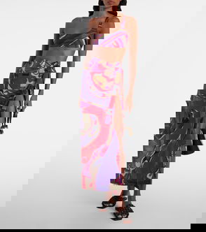 Hawaii Asymmetric Silk Satin Midi Skirt