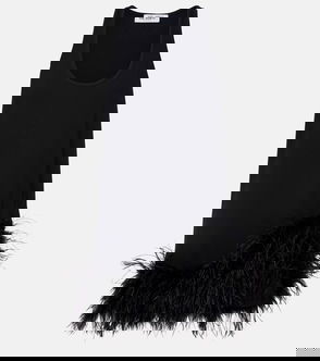 Sheer Feather-Trimmed Miniskirt