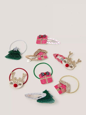 Kids' Christmas Hairband And Clip Set, Pack Of 8, Multi