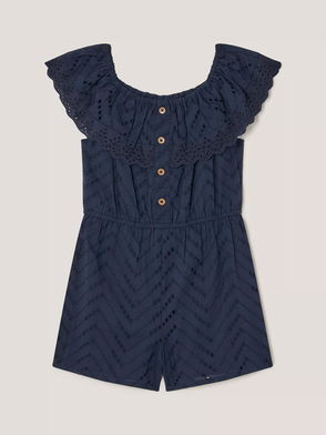 Kids' Cotton Floral Embroidered Playsuit, Pink