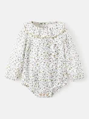 Baby Cotton Blend Floral Bodysuit, Natural White