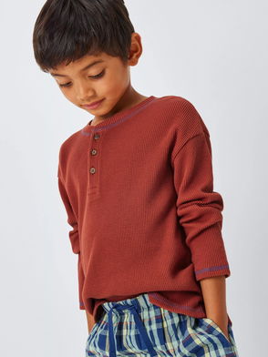 Kids' Mix-And-Match Long Sleeve Waffle Pyjama Top, Orange