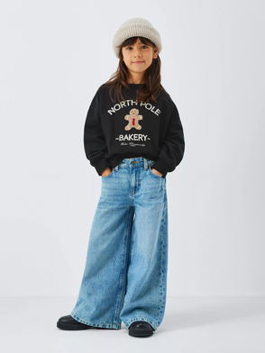 Kids' Cotton Sequin Christmas Bear Top, Navy