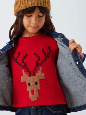 Kids' Graphic Reindeer Jumper, Red, Multi