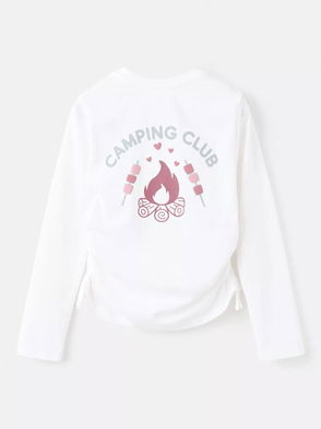 Kids' Cotton Long Sleeved Bowling Print T-Shirt, Natural White