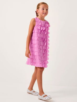 Kids' Jazzy Scallop Frill Shift Dress, Magenta