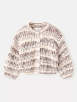 Kids' Long Sleeved Knitted Striped Cardigan, Multi White