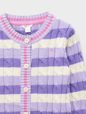 Kids' Stripe Cable Knit Cardigan, Light Purple