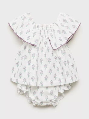 Baby Lezo Printed Dress & Bloomers Set, Natural White