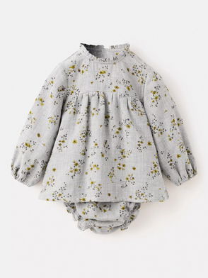Baby Bilbao Cotton A-Line Floral Dress, Grey