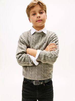 Kids' Cable Knit Jumper, Mid Grey Heather