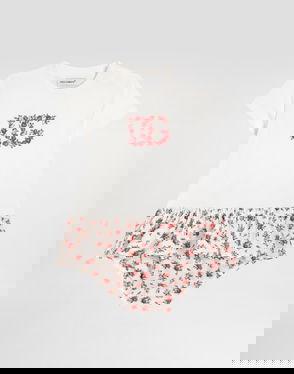 Small Rose-Print Jersey And Poplin Dress With DG Logo