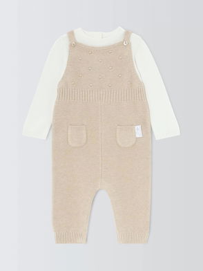 Baby Cashmere Blend Dungarees & Long Sleeve Top Set, Brown