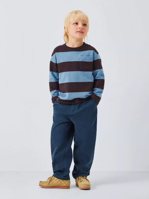 Kids' Block Stripe Jersey Top, Choc/Blue Stripe
