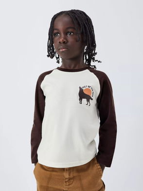Kids' Wolf Graphic Raglan Sleeve Top, White/Black