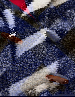 Cosy Borg Jacket-Ivory, Blue And Red Check