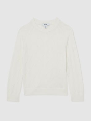 9-13 Yrs Merino Wool-Blend Rib-Detail Jumper In Snow