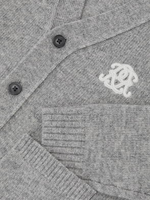 9-13 Yrs Monogram Relaxed Wool-Blend Cardigan In Soft Grey Melange