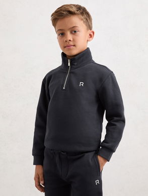 13-14 Yrs Slim Fit Half-Zip Funnel Neck Velour Sweatshirt In Navy Blue