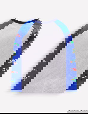 Printed Sleeve Raglan T-shirt-Racing Cars