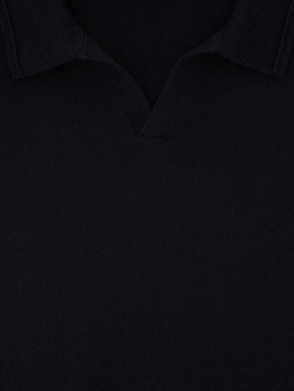 13-14 Yrs Merino Wool Open-Collar Polo Shirt In Navy