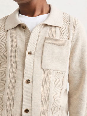 9-13 Yrs Stitch-Detail Polo-Collar Cardigan Cotton-Blend In Oatmeal