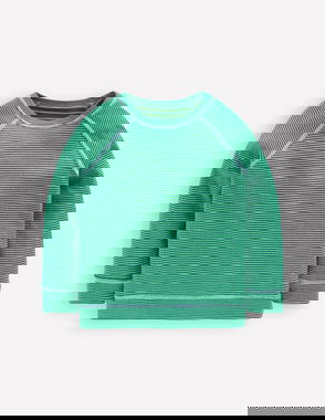 Reversible Long Sleeve T-Shirt-GREEN TAMBOURINE / BLUE