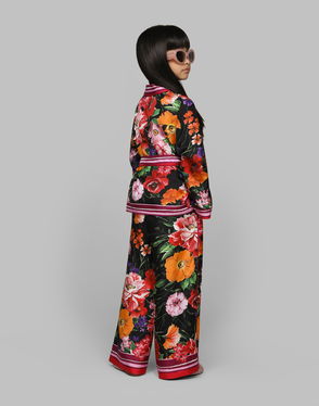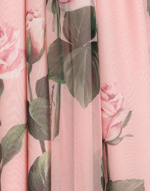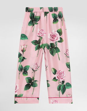 Chiffon Pants With Rose Print And Dolce&Gabbana Logo