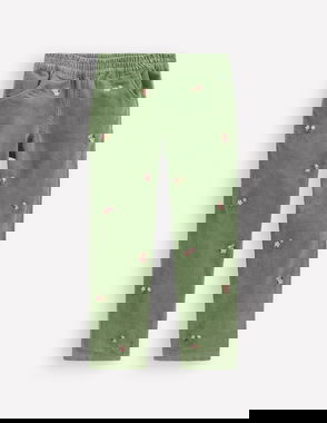 Cord Pull-On Trousers-Broccoli Green Embroidered