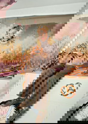 Bobbie Appliqué Joggers-Raspberry Pink Flowers