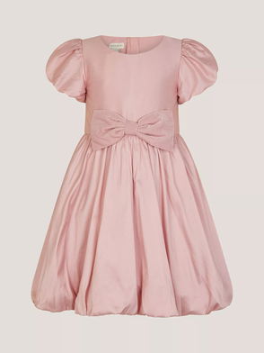 Baby Velvet Bow Bubble Hem Dress, Dusky Pink