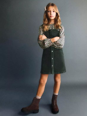 Kids' Gisela Corduroy A-Line Pinafore Dress, Dark Green
