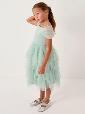 Kids' Scarlet Off The Shoulder Tulle Dress, Sage