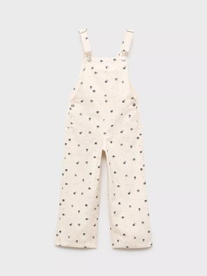Kids' Hilary Cotton Floral Dungarees, Light Beige