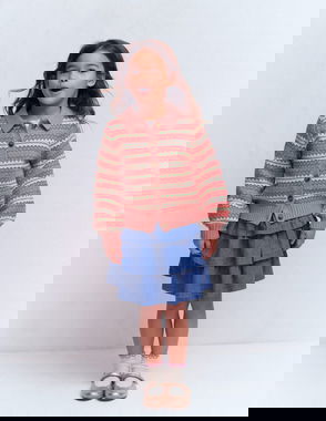 Kids' Long Sleeved Knitted Striped Cardigan, Multi White