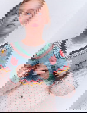 Cotton Embroidered Cardigan-Ecru Marl Flowers