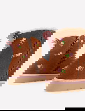 Kids' Logo-Patch Faux-Shearling And Rubber Boots
