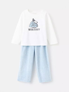 Kids' Polar Bear Pyjama Set, White/Blue