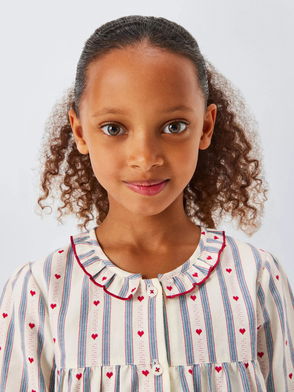 Kids' Cotton Long Sleeved Striped Heart Pyjamas, Off White