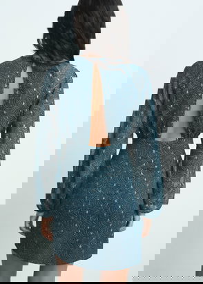 Kids' Long Sleeved Bow Mesh Dress, Navy