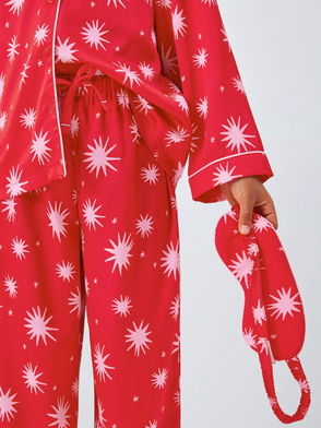 Kids' Star Print Satin Pyjamas & Eye Mask Set, Red